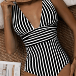 Dámské pruhované plavky s odhalenými zády - pohodlné a pružné