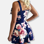 Viskózový overal Anna s přiléhavým pasem | Overal bez rukávů s květinovým vzorem