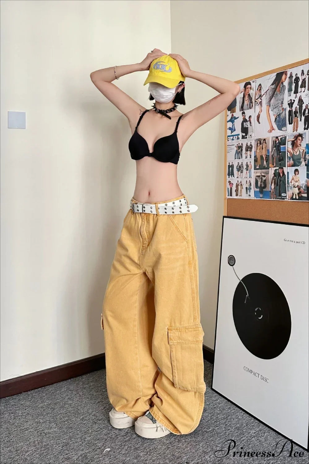 Ležérní džínové cargo kalhoty s rovnými nohavicemi