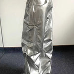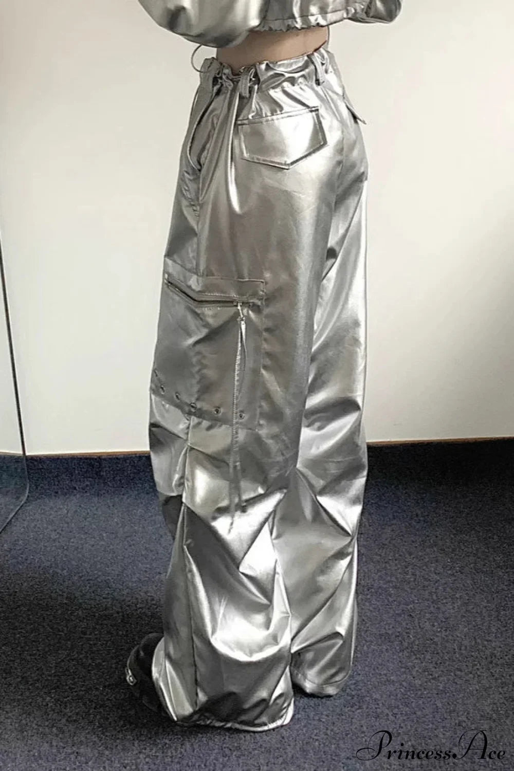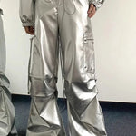 Kalhoty cargo s vysokým pasem a stříbrnými ohrnutými manžetami