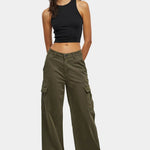 Kalhoty cargo s vysokým pasem, stahovací šňůrkou a kapsami