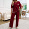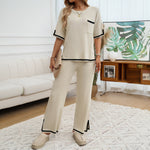 Dámská společenská souprava – Měkký úplet – Volný střih – Široké kalhoty – Kontrastní lemy