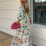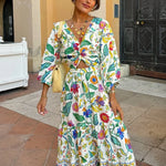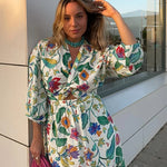 Dámská sukně a top - Zavinovací styl - Dlouhý rukáv - Květinový potisk - Splývavý vzor