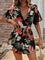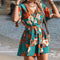 Dámský krátký overal – Zavinovací výstřih – Volánkové rukávy – Zavazovací pásek – Květinový potisk