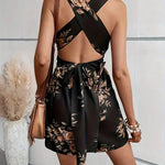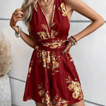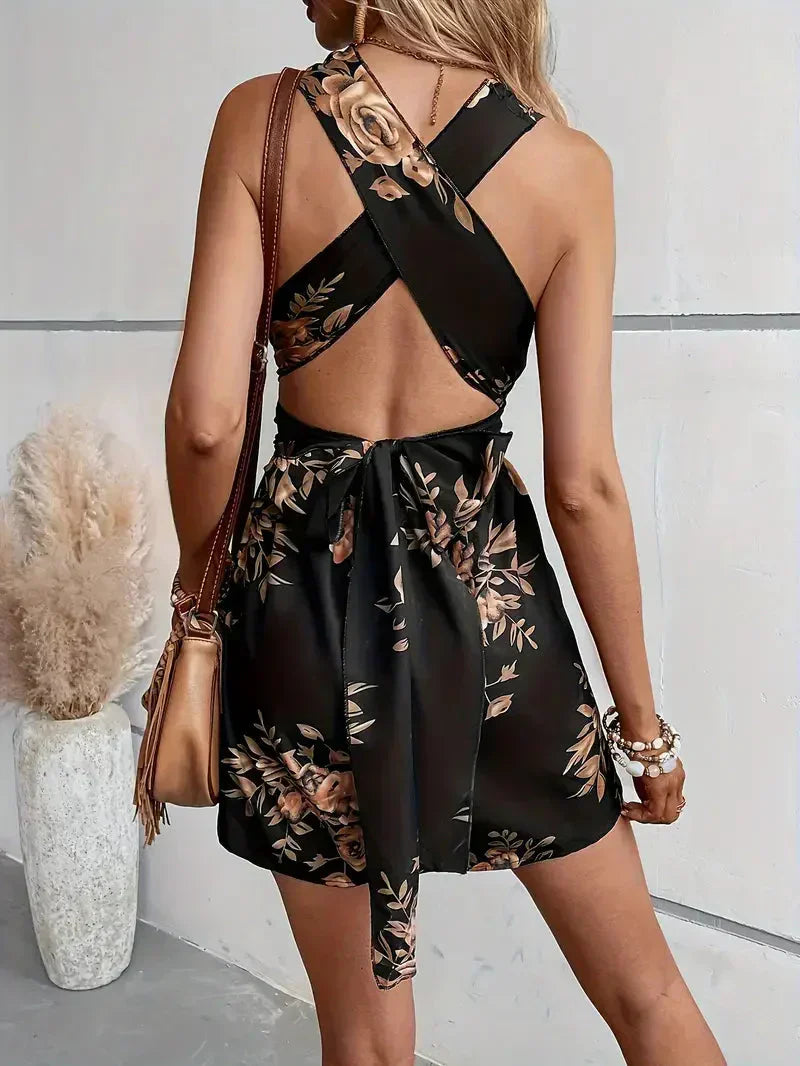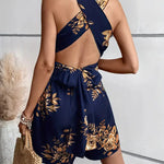 Dámský krátký overal – Bez rukávů – Výstřih do V – Přiléhavý pas – Květinový vzor